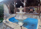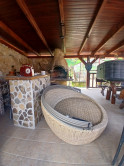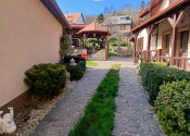 Vonkajšie priestory- Dvor s nekonečnými možnosťami o rozlohe 946 m2 , je rozdelený na 2 zóny. V prednej časti sa nachádza garáž a vonkajšie parkovanie. Zadná časť dvora slúži na záhradné aktivity. Plne vybavený altánok s krbom, skleník, vírivka, hojdačka.