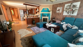 Dom je zateplený, z časti podpivničený. Pozostáva z prízemia a podlažia. Prízemie- vstupná hala, priestranná kuchyňa s obývacou izbou a jedálňou, kúpeľňa, pracovňa, technická miestnosť , špajza, toaleta, hospodárska miestnosť. Podlažie- 3 priestranné izby, šatník , kúpeľňa, príručná miestnosť, balkón. Kúrenie- lokálne, podlahové v kombinácii s radiátormi, plynový kondenzačný kotol a kotol na tuhé palivo. Podlaha- plávajúca, dlažba.Dom je napojený na verejnú kanalizáciu a vodovod, taktiež má vlastnú studňu.