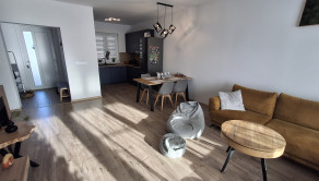 Zastavaná plocha domu je 124 m2, celková plocha pozemku je 525 m2. Dom pozostáva zo 4 izieb, z toho obývacia izba je spojená s kuchyňou a jednej technickej miestnosti. Okná zn. Salamander s 3-sklom efektívne znižujú tepelné straty, čo ušetrí náklady na vykurovanie alebo chladenie a eliminujú rosenie skiel. Vonkajšie žalúzie Z-90 sú na diaľkové ovládanie. Podlahové kúrenie a teplá voda sú zabezpečené tepelným čerpadlom zn. Midea. Strecha je rovná, plechová. Dom je napojený na IS - elektrina, verejný vodovod a kanalizáciu.