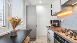 Byt prešiel kompletnou a kvalitnou rekonštrukciou v rokoch 2023/2024. V celom byte boli vymenené elektrické rozvody, ku ktorým sú k dispozícii revízne správy, rovnako aj rozvody vody. Kúpeľňa je nová, vybavená sprchovým kútom, obkladmi a dlažbou, pričom okno v kúpeľni zabezpečuje prirodzené vetranie. Súčasťou rekonštrukcie sú interiérové dvere, bezpečnostné vstupné dvere, podlahy v izbách a dlažba v kuchyni a na chodbe. Kuchyňa je vybavená kuchynskou linkou s plynovým sporákom a vstavaným digestorom, pričom dizajnovým detailom je škrabaná omietka pri linke.