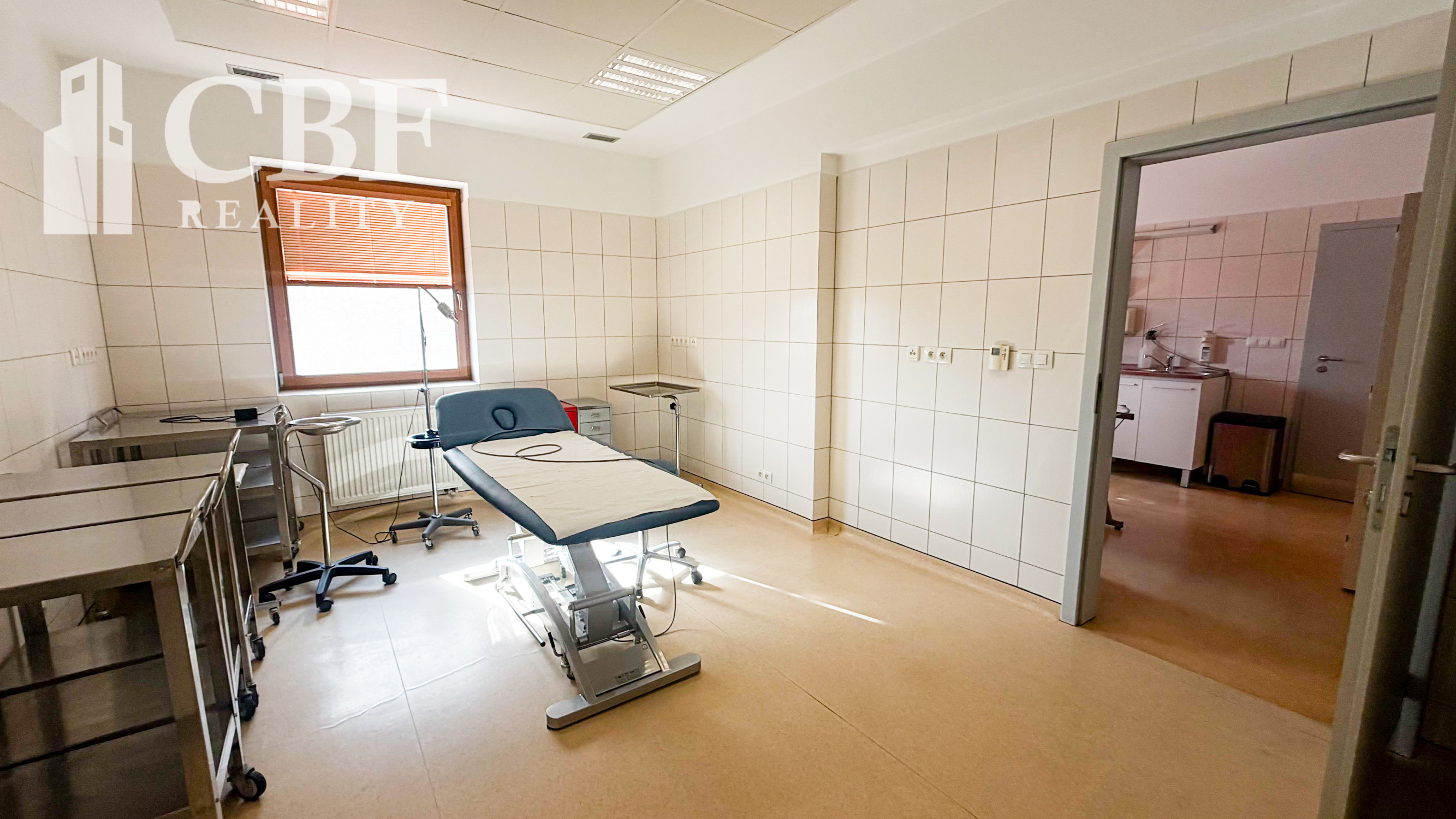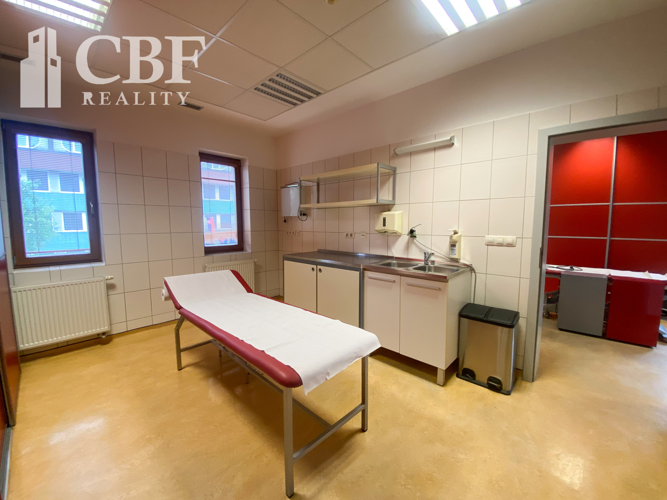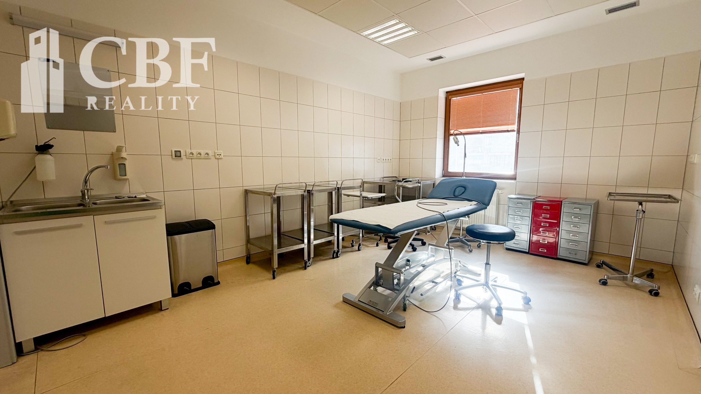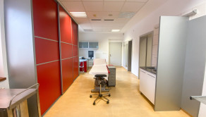 Dispozícia: tri priechodné miestnosti + technická miestnosť vhodná aj ako šatňa alebo sklad. Priestor bol pôvodne prispôsobený pre chirurgické úkony, no bez problémov sa prispôsobí aj iným lekárskym odborom.
