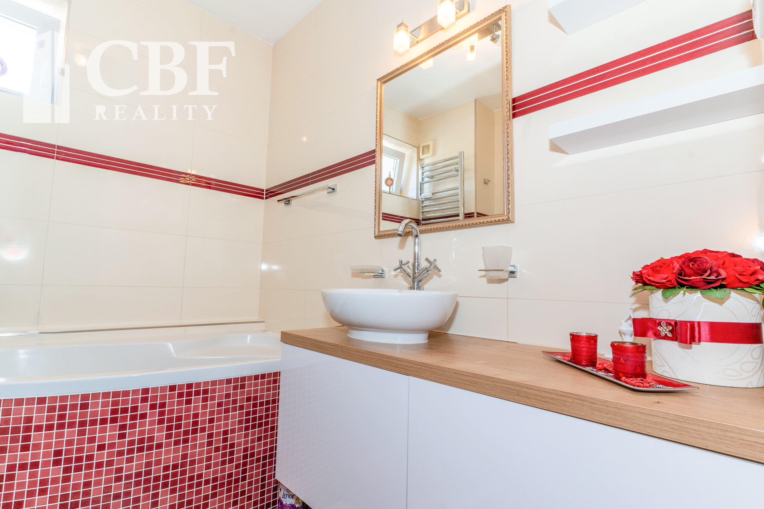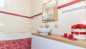 • Dve kúpeľne – prvá kúpeľňa s rohovou vaňou je ako stvorená na relax, druhá je prakticky riešená so sprchovým kútom